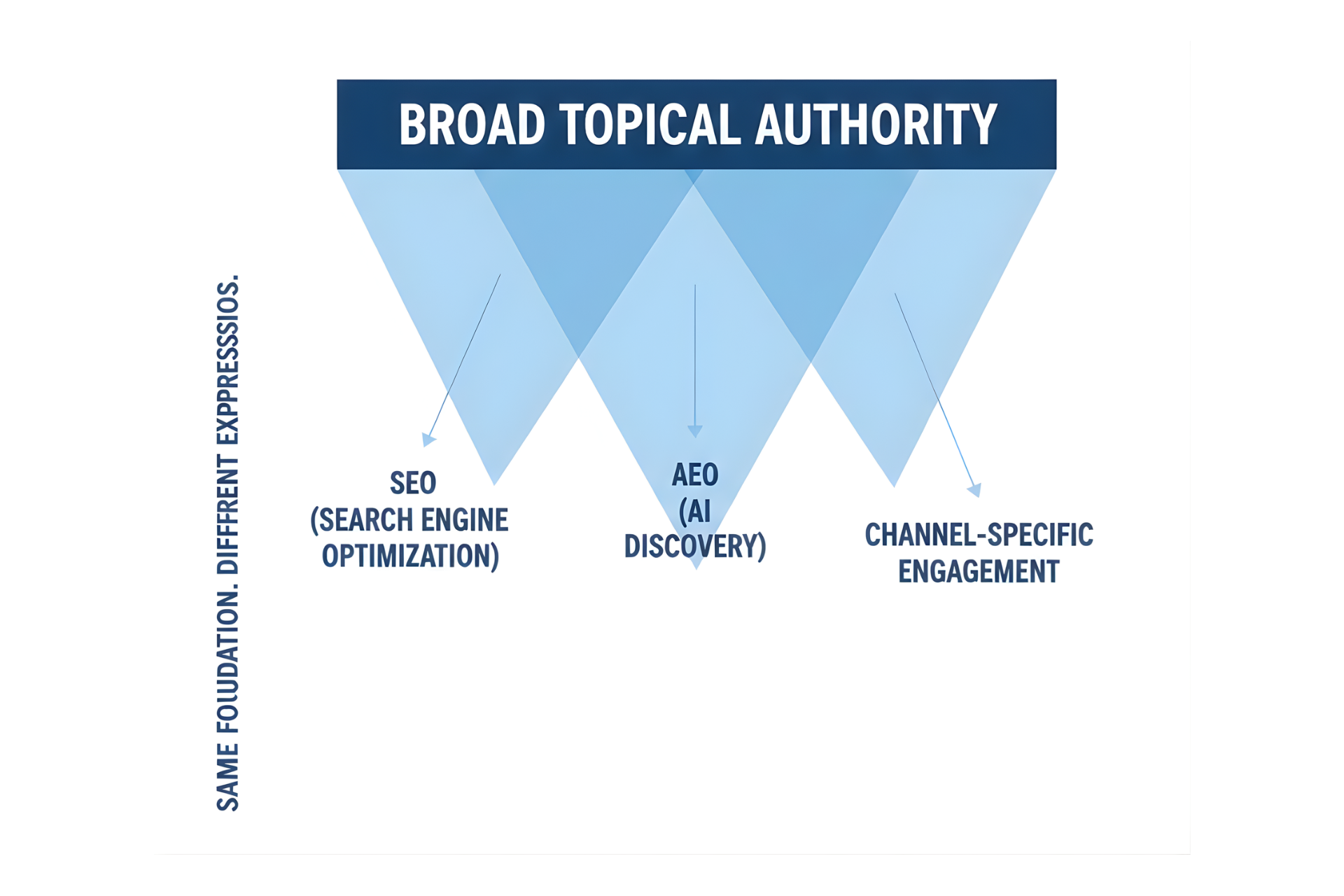 This seems pretty common sense but is important to go over because it give you the content structure needed to overlap SEO, AEO and content marketing. Content pyramids across multiple channels.